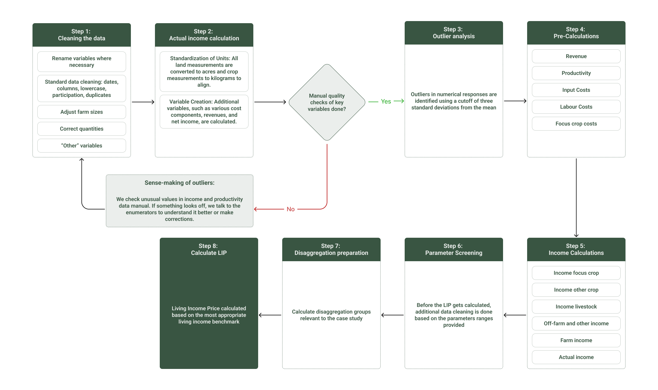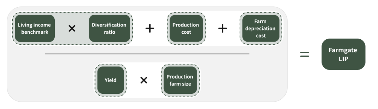 As seen in the overview above, the final part of the first R script is calculating the Living Income Price. Understandably, this is quite a crucial part of your calculations so let’s dive deeper into what that entails. The visual below provides an overview of the calculation.